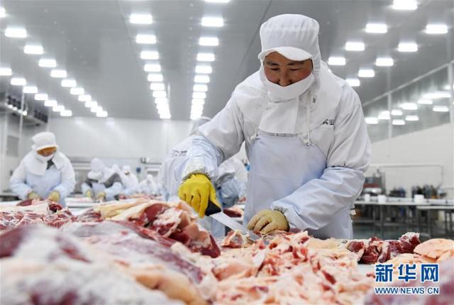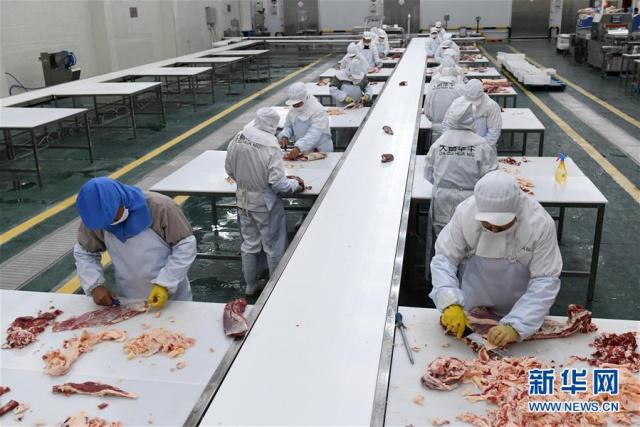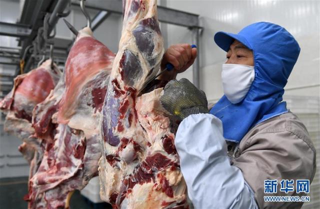 广西河池市都安瑶族自治县在脱贫攻坚产业发展中,建设广西都安西南冷链仓储物流中心,并于2018年6月开始运营。这个中心集屠宰加工、产品展示、电子商务、冷链物流等功能于一体,形成“供、储、展、运、销、配”全产业链条,是都安“贷牛还牛”扶贫产业乃至河池市养殖扶贫产业链的“终点站”,也是从养殖到市场、餐桌的中转枢纽,为当地扶贫产业提供强有力的市场流通保障。 4月23日,在广西都安西南冷链仓储物流中心,工人在切割牛肉。 新华社记者 陆波岸 摄