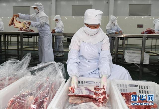 广西河池市都安瑶族自治县在脱贫攻坚产业发展中,建设广西都安西南冷链仓储物流中心,并于2018年6月开始运营。这个中心集屠宰加工、产品展示、电子商务、冷链物流等功能于一体,形成“供、储、展、运、销、配”全产业链条,是都安“贷牛还牛”扶贫产业乃至河池市养殖扶贫产业链的“终点站”,也是从养殖到市场、餐桌的中转枢纽,为当地扶贫产业提供强有力的市场流通保障。 4月23日,在广西都安西南冷链仓储物流中心,工人在包装牛肉。 新华社记者 陆波岸 摄
